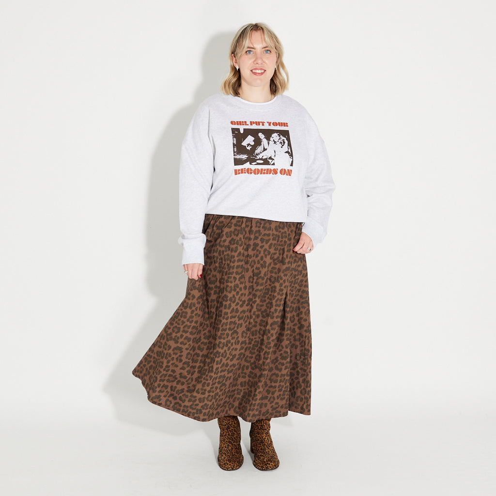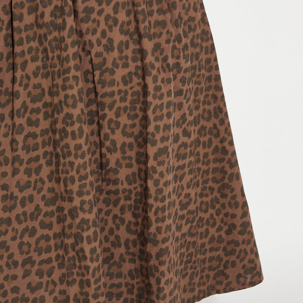 Chocolate brown leopard print A-line skirt. A new colour for autumn from Danish brand Black Colour, featuring an elasticated waistband and pockets!