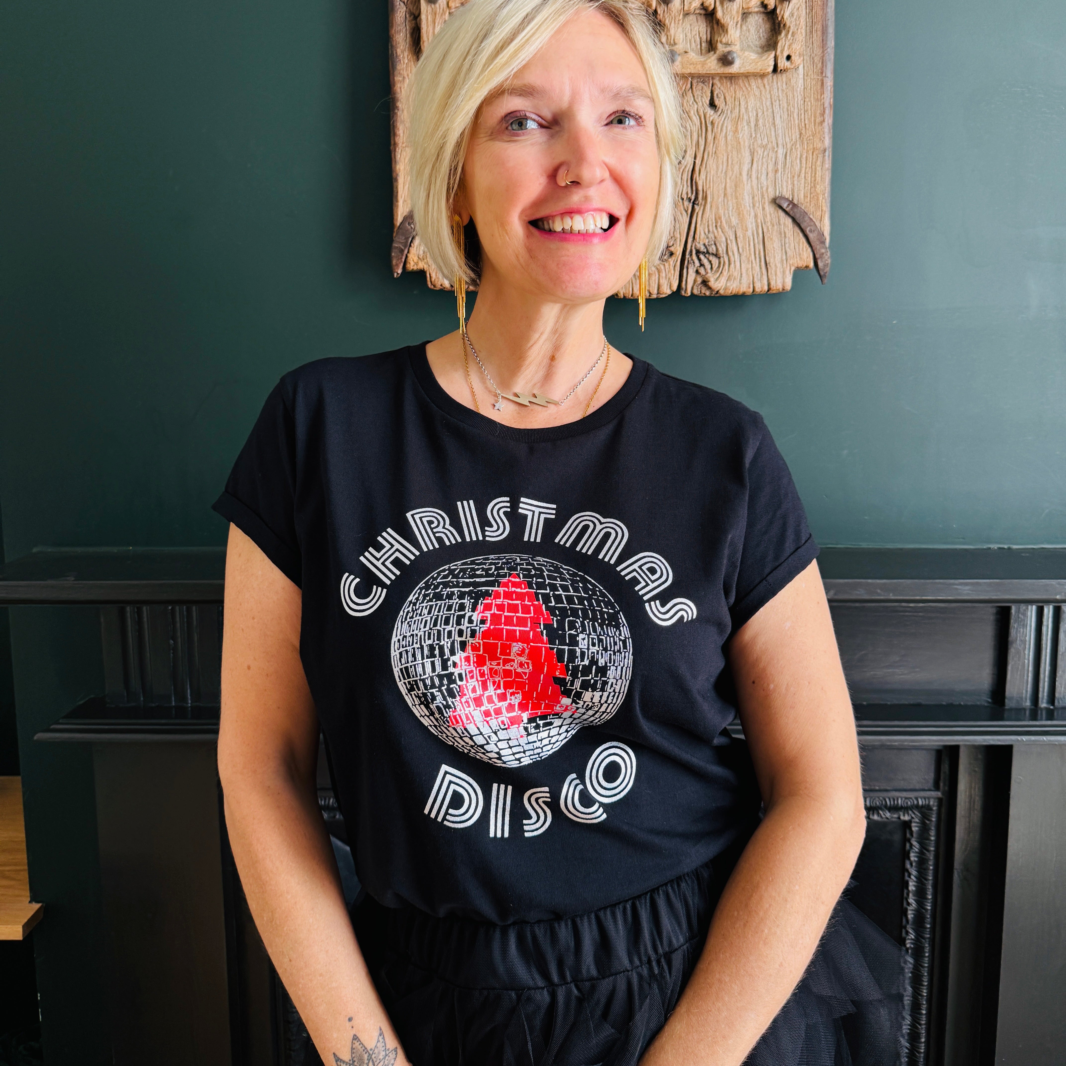 Stand out whilst celebrating the festive season in this Christmas Disco Ball Tshirt. Combining our love of all things Disco & Christmas it's the party lovers perfect design for celebrations.