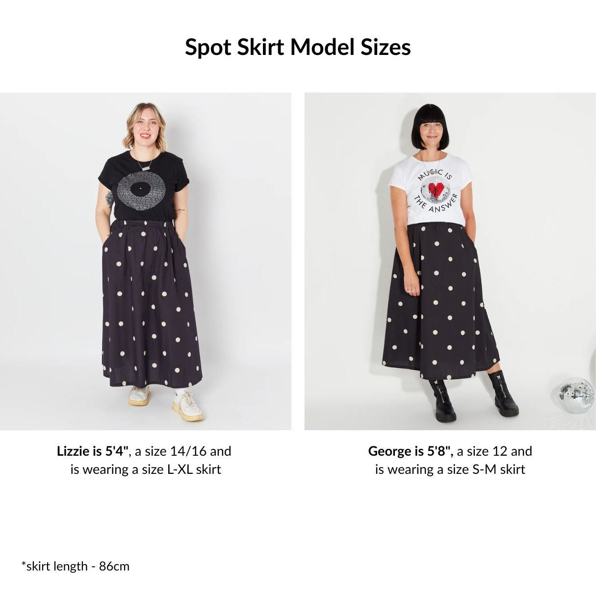 Our black and ivory polka dot unlined skirt in a lightweight cotton is perfect for the Spring/Summer season. Pair it with trainers or sandals & a tee for a daytime look, or dress it up for the evening with your favourite heels.