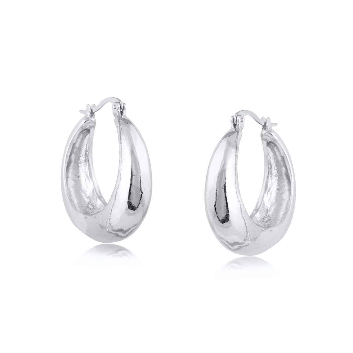 These silver plated hoop earrings combine a high-shine finish with a hand-crafted organic shape.