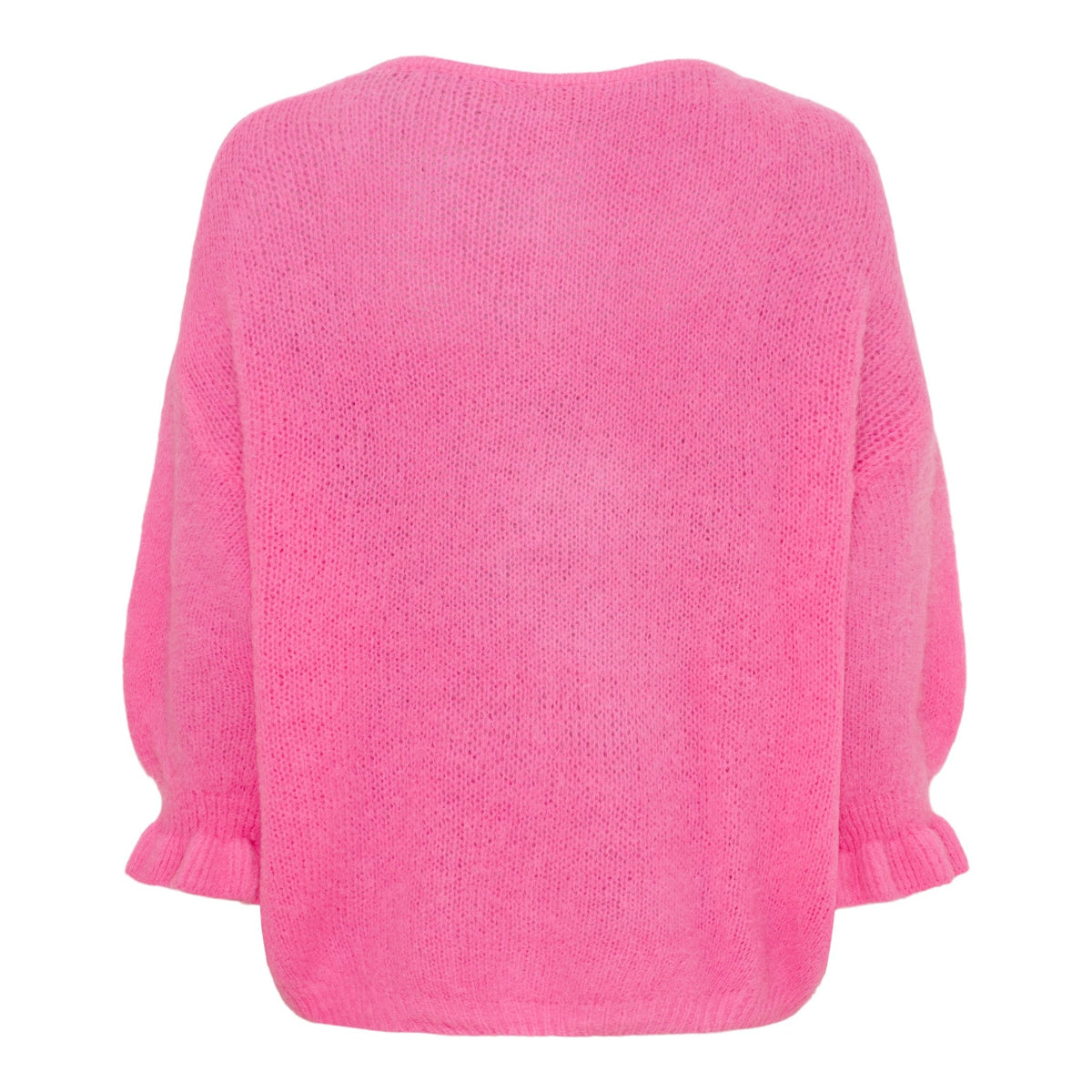 Made in Italy with an Alpaca mix, it is super soft and features 3/4 length sleeves, with frill detail at the cuffs and mother of pearl buttons.