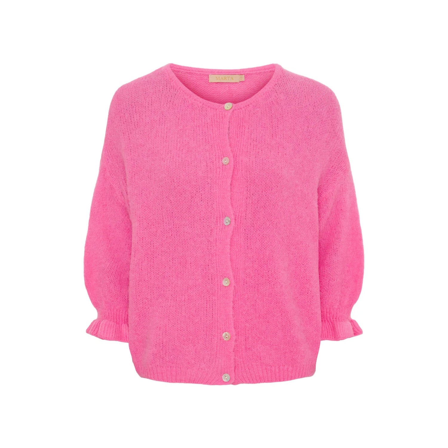 Our new pink frill sleeve cardigan is the perfect layering piece.