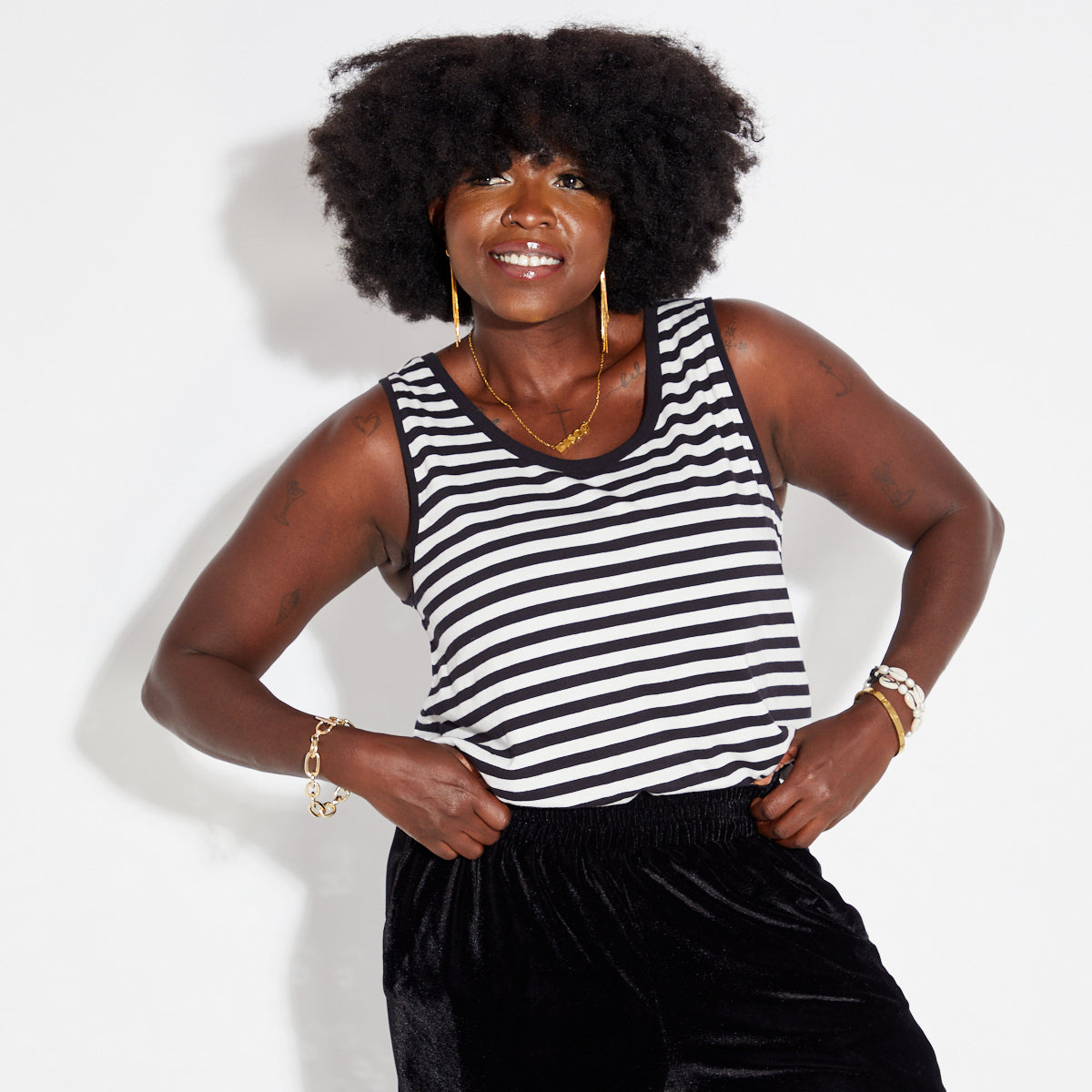 Our staple black & ivory striped vest is made from soft cotton, this wardrobe essential is perfect for parties and styling throughout the year.
