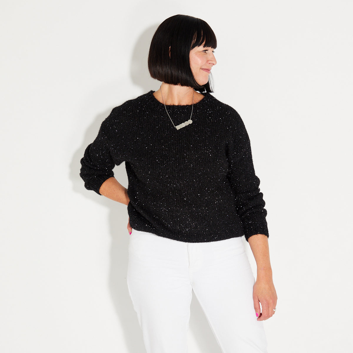 A relaxed fitting knitted jumper made from a soft wool blend yarn, featuring a round neck.