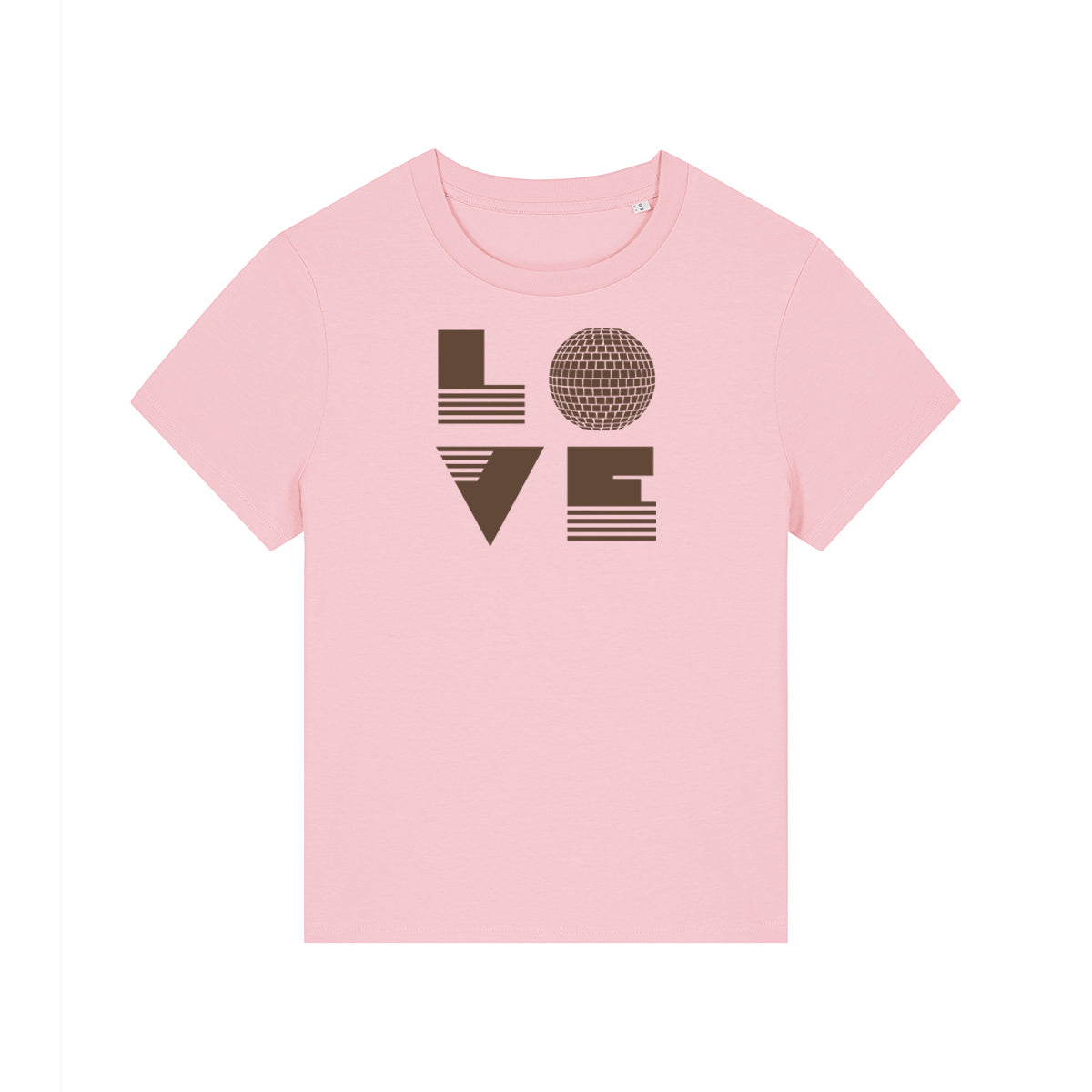 Our best selling LOVE design on a bubble gum pink tshirt, this one celebrates our love of the disco ball. A perfect addition to your wardrobe.