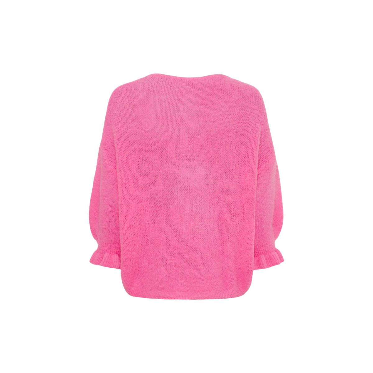Made in Italy with an Alpaca mix, it is super soft and features 3/4 length sleeves, with frill detail at the cuffs and mother of pearl buttons.