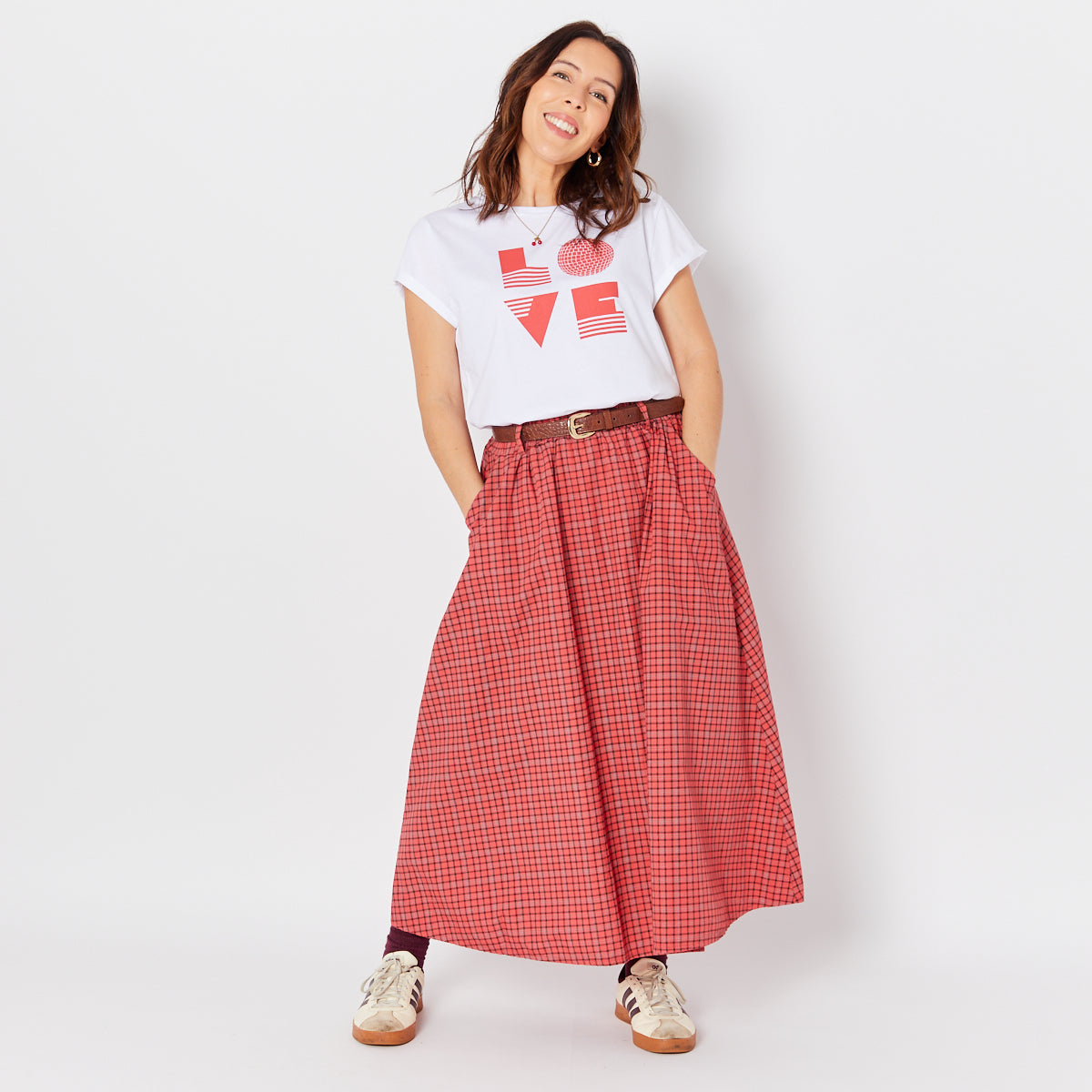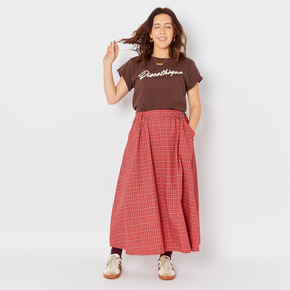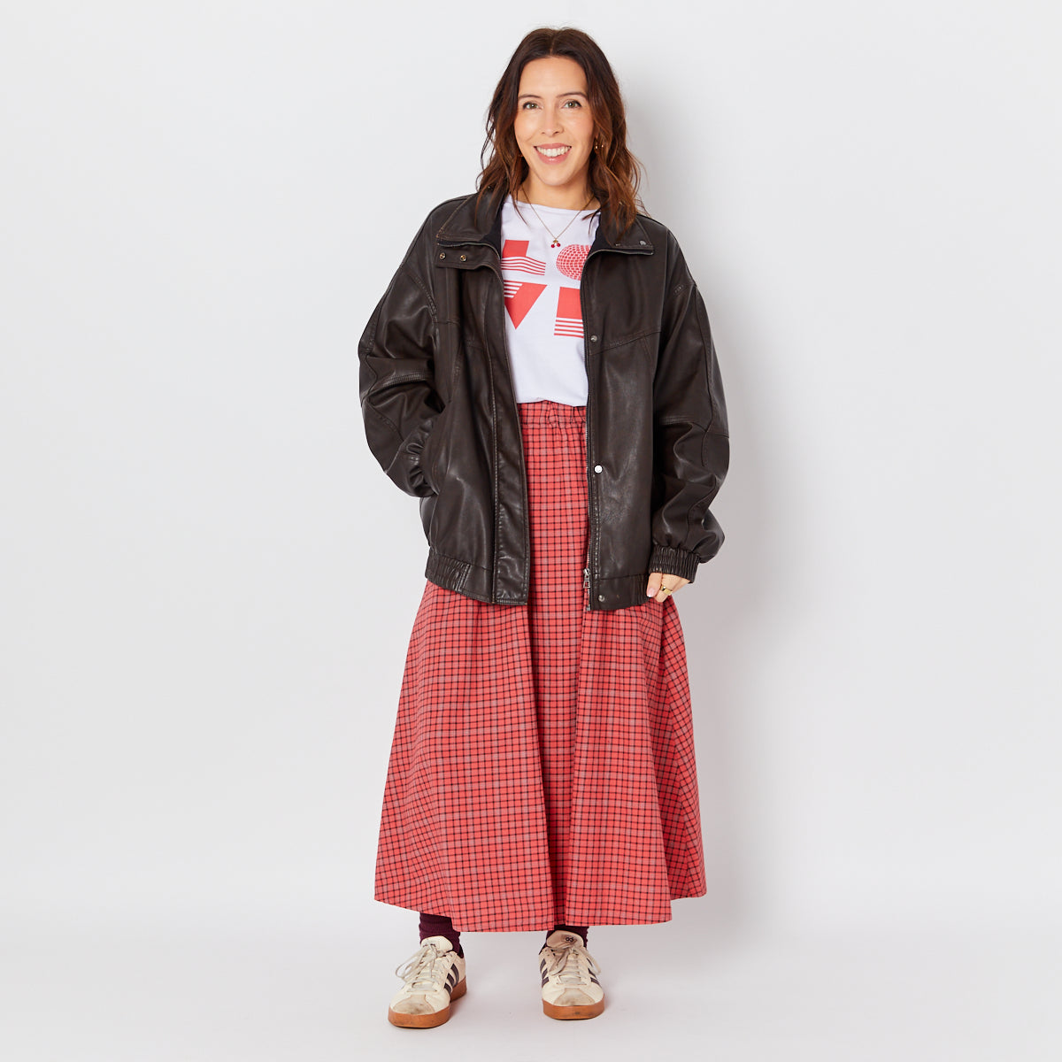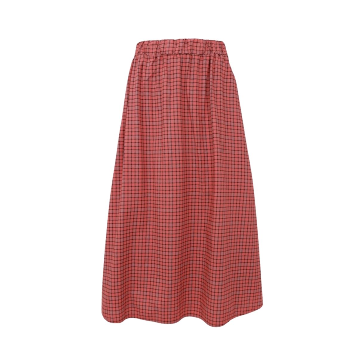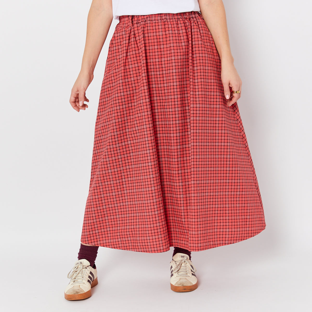 Red check A Line Skirt. A new colour and design from Danish brand Black Colour, featuring an elasticated waistband and pockets!