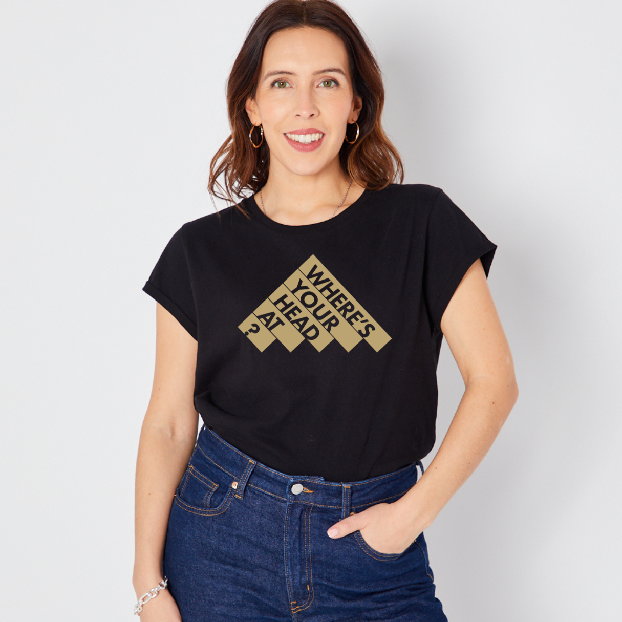 Our new Where's Your Head At design on a black Candi Tshirt.