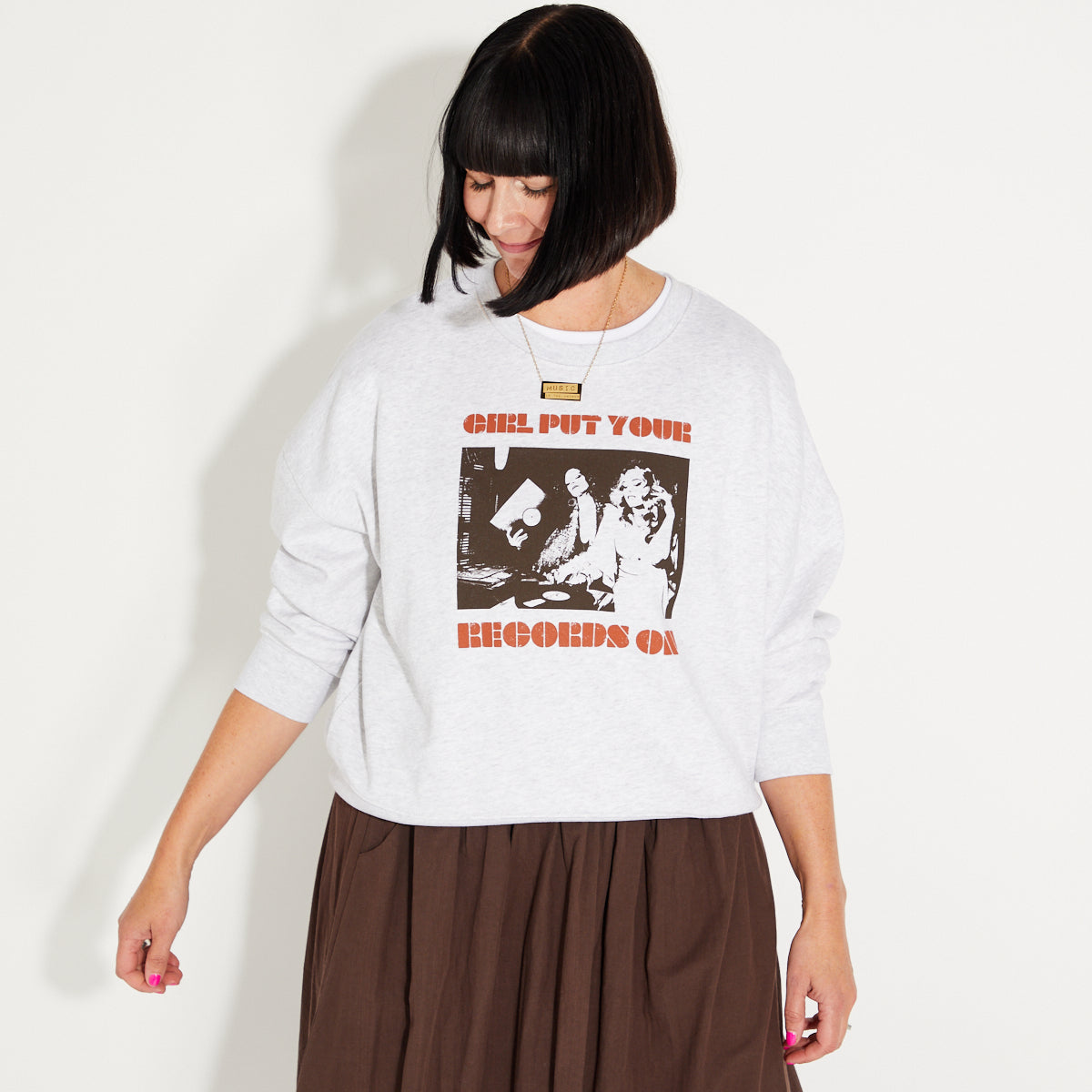 This pale grey sweatshirt is Manufactured under Fair Wear standards, and screen printed by our local printer, Tom.