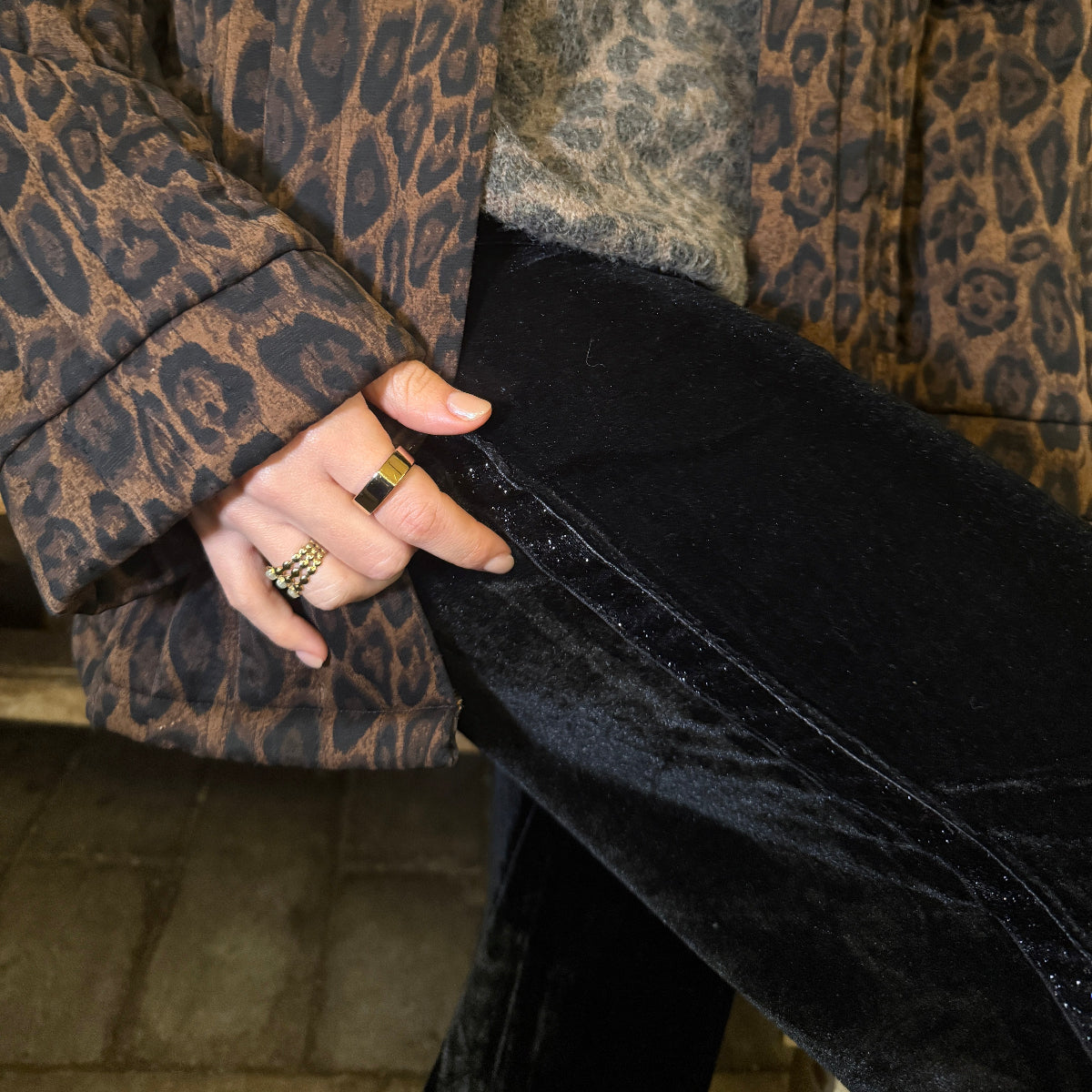 Black Velvet Side Stripe Trousers.