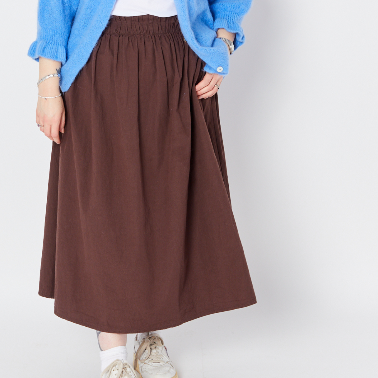 Made from soft cotton (unlined) in a rich chocolate colour, it features an elasticated waist for a perfect fit and of course - pockets!