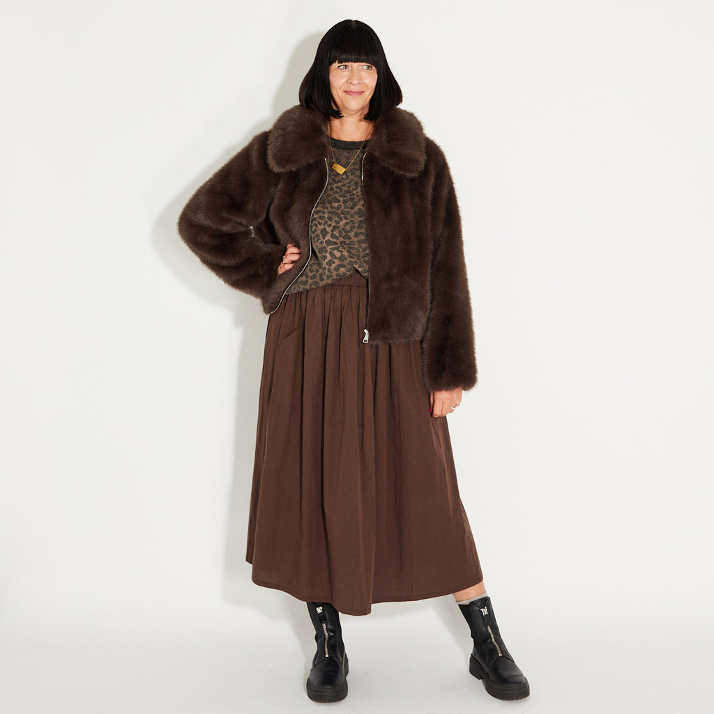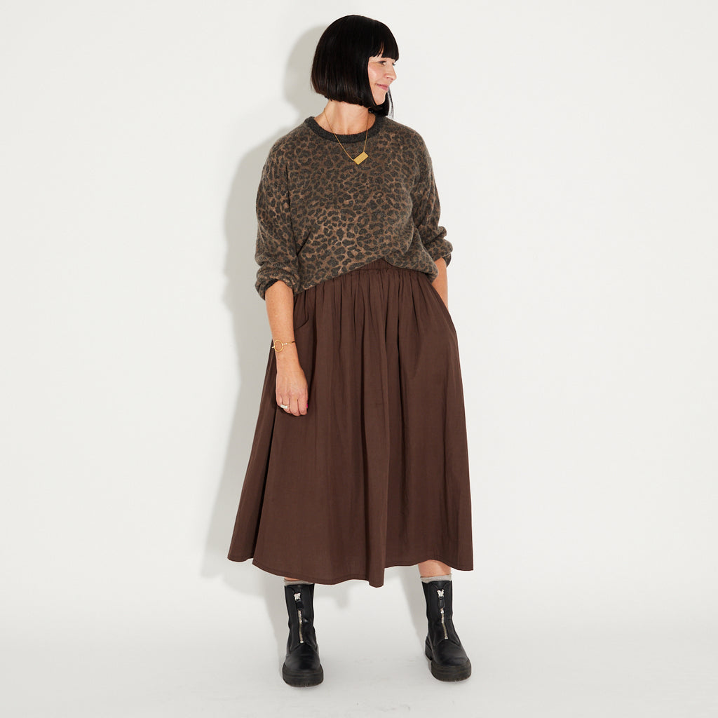 This Chocolate A Line Skirt has been designed exclusively for Disko Kids, combining comfort and style.