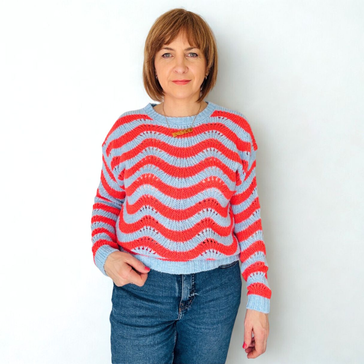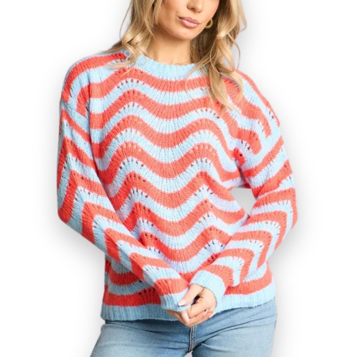 Blue & Orange Zig Zag Knitted Jumper - Limited run.