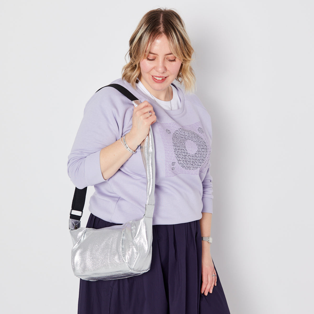 Make a statement with our Small Silver Crossbody Bag.
